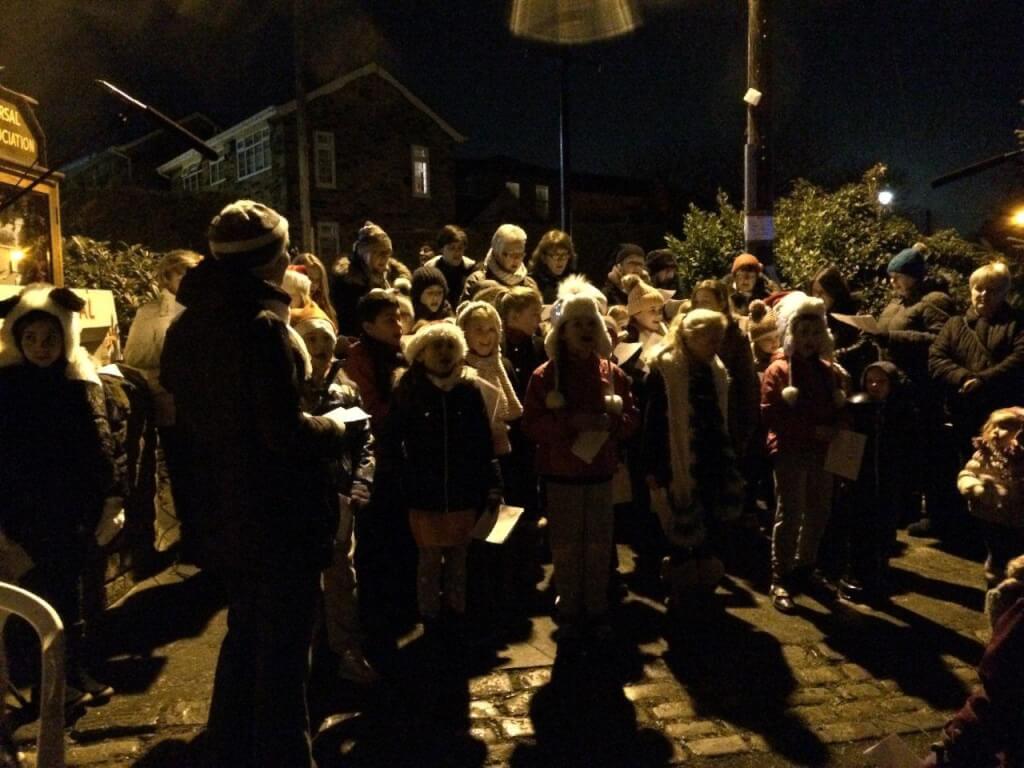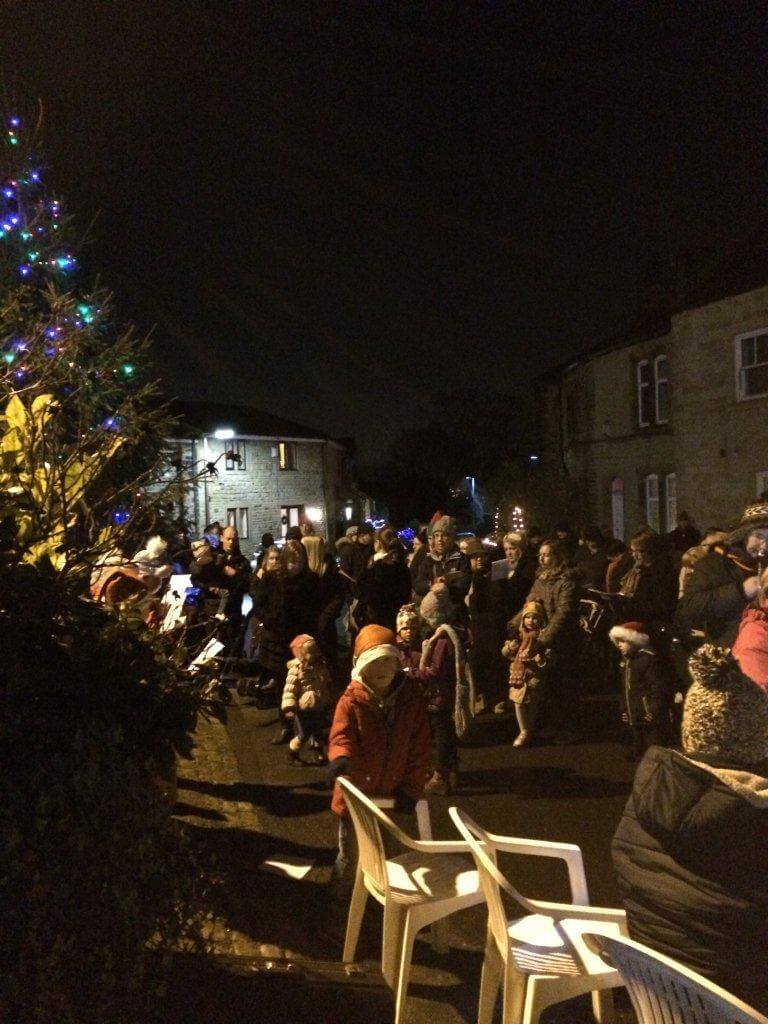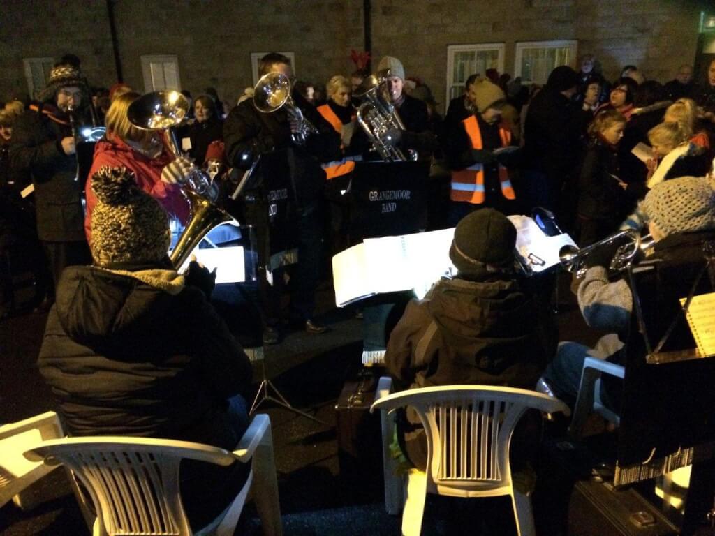 Last night, a small group from the band performed carols around the Christmas tree at Little Gomersal, West Yorkshire. This event, supported by children from Gomersal St. Mary’s CE(C) Primary School and the local community as a whole, is always well supported and we love playing there.